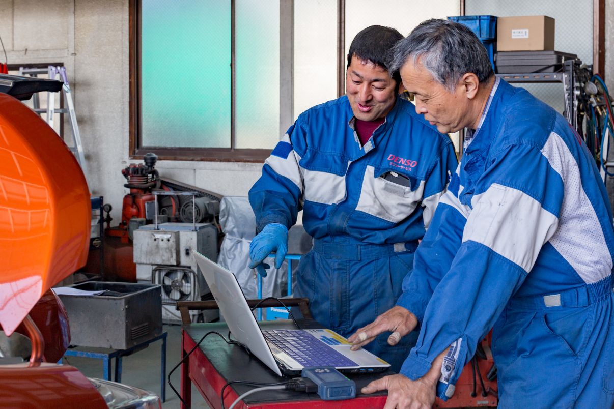 デンソーサービスステーションの一員として全国の仲間と連携し、最新の技術研修や資格取得を通じて、進化する自動車の高度なシステムにも対応しています。